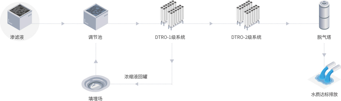 垃圾填埋场废水主要来源于垃圾填埋过程中,莱特莱德采用双级DTRO全膜系统对垃圾填埋场渗滤液进行处理,处理后出水可达到《生活垃圾填埋场污染控制标准》(GB16889-2008)的标准。