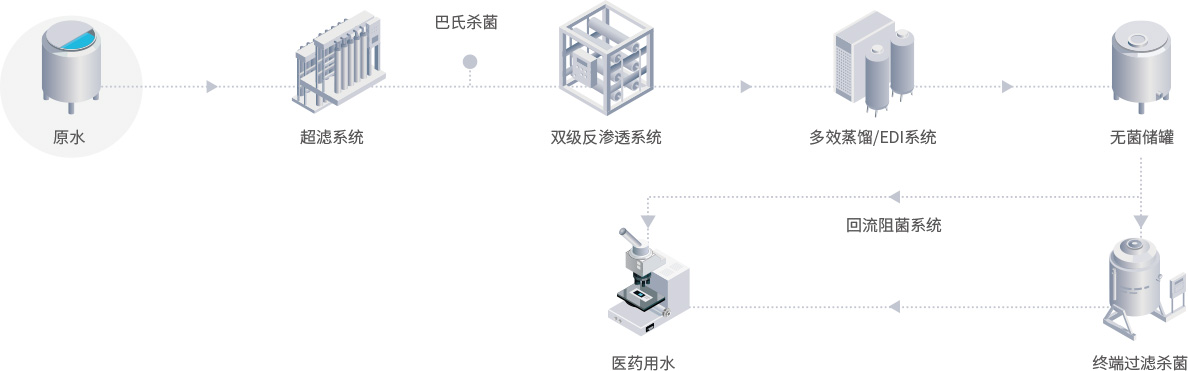 纯化水在医药生产及医疗器械生产中有着十分广泛的应用。纯化水可作为普通药物制剂的配制溶剂、试验用水、注射用水配制注射剂,也可以作为医疗器械的清洗水使用。在世界各国药典中,明确规定了纯化水和注射用水的水质要求。