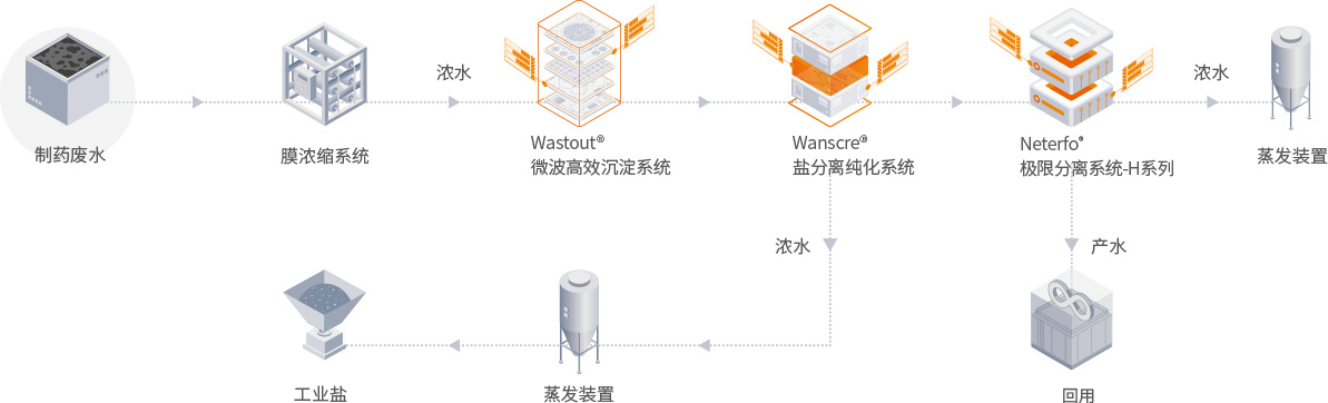莱特莱德制药废水处理及零排放系统作为一种循环经济体系,可节省大量排污费用,更大限度地保护环境,同时为企业提供高品质产水,用于企业生产工艺用水。